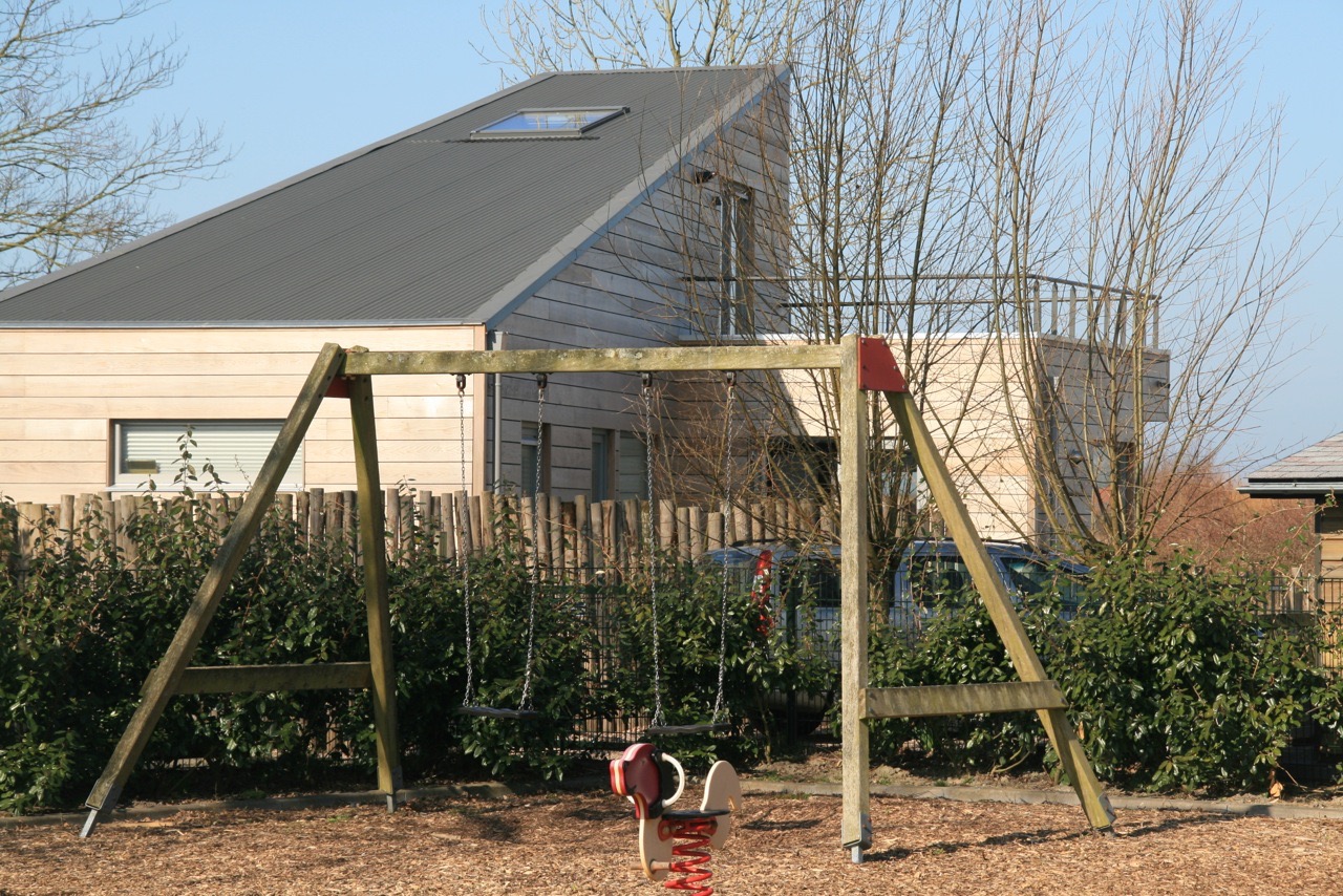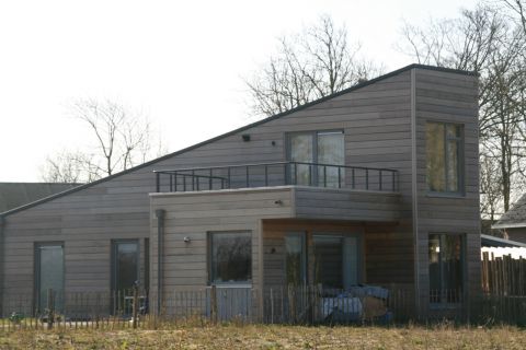 Deze red-cedarhouten nieuwbouw uit 2013 ligt aan drie zijden vrij